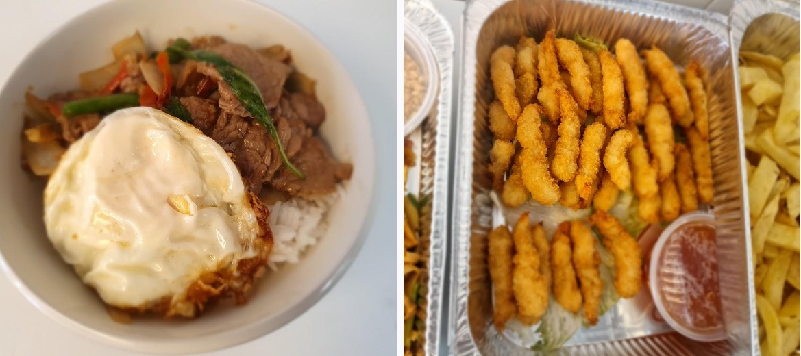 TNT DORE serves traditional fish and chips alongside a variety of freshly cooked Thai dishes, giving a delightful fusion of flavors.